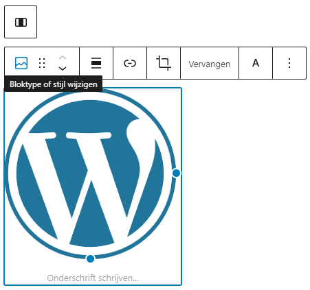 Gelukkig zijn daar handige manieren voor. Klik maar eens op één van de afbeeldingen. Er wordt dan boven de afbeelding een ‘pop-up werkbalk’ geopend. Als je links in die werkbalk over het bloktype beweegt, zie je dat er een icoon boven verschijnt.